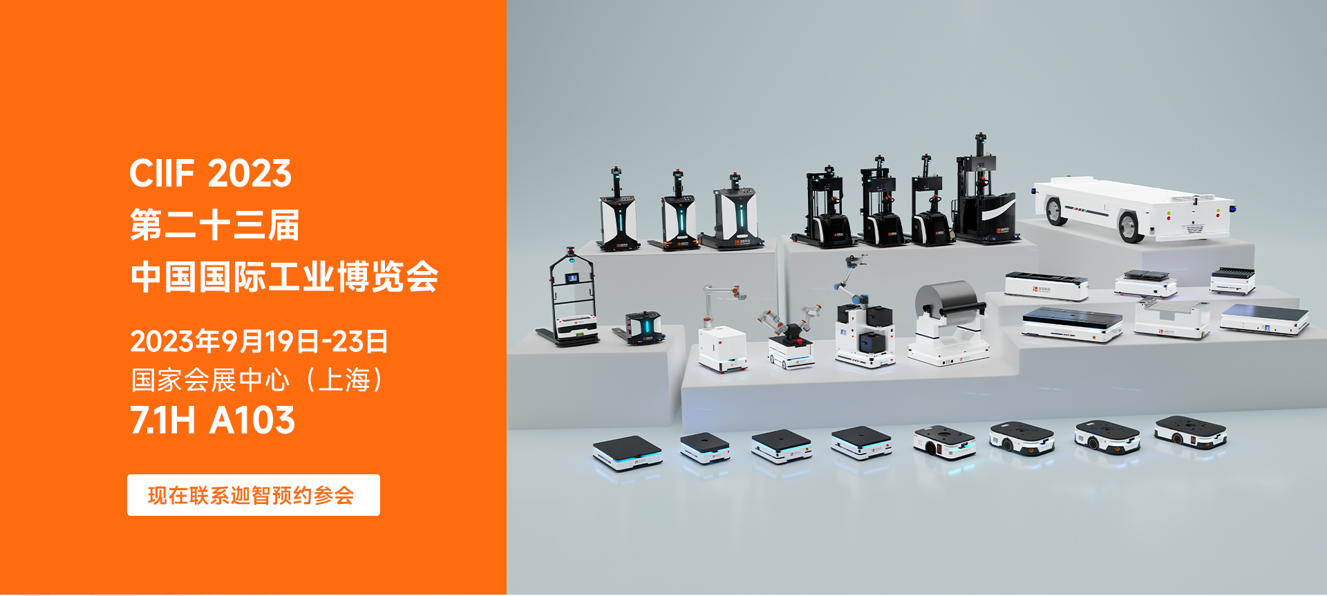 届时,迦智科技将携系列首发新品×明星产品,及行业领先的智造物流解决方案,亮相该展,满足多种场景用户需求,为各行业伙伴们带来丰富多元的智能制造物流升级服务。更多精彩,尽在第23届中国工博会9月19-23日7.1H A103展位。